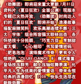黑土白云同心协力 免费宠物等你来赢同吃同喝同欢乐——暑期夏令营巡回赛 欢乐江苏 绿色舞林 绿色网游文明树新风 绿色数码厚礼送家族 锐动之夏——WeDance! 舞动奇迹 周末来劲舞 靓丽一夏,来点有劲的漂亮宝贝 家族之星 长沙“舞友”欢乐聚第三个夏天 我们仍然在一起 舞动江西 大型暑期循环赛 “炫丽冰舞”健康游暑期夏令营 双舞夏令营——家族闪耀欢乐暑期 支持绿色原创 做真正“舞”林豪杰 清凉夏日